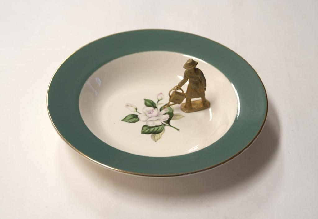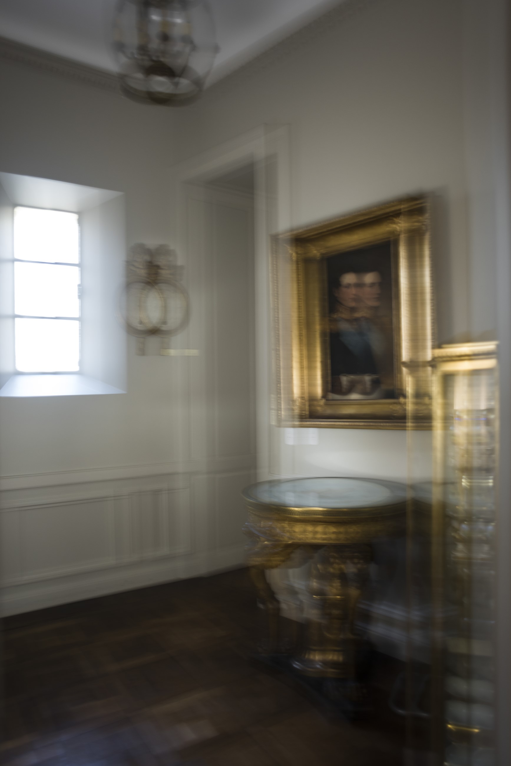 En una vitrina de chaflán, iluminada por reflejo, se guardan preciosas porcelanas de Sevres y de jade, vasos de cristal de Venecia y otros pequeños bibelots, mereciendo recordarse una linda miniatura de la emperatriz Josefina, primera esposa de Napoleón, con autógrafo y dedicatoria a una de sus damas de compañía.